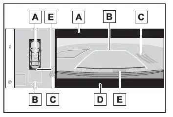 Indipendentemente dal fatto che i sensori di assistenza al parcheggio Toyota siano disattivati o meno, se i sensori di assistenza al parcheggio Toyota rilevano un oggetto mentre il sistema Advanced Park è in funzione, il display a comparsa dei sensori di assistenza al parcheggio Toyota viene visualizzato automaticamente sul display delle indicazioni.