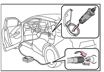 23.Dopo aver guidato per circa 5 km, fermare il veicolo in un luogo sicuro e su una superficie piana e compatta, quindi ricollegare il compressore.